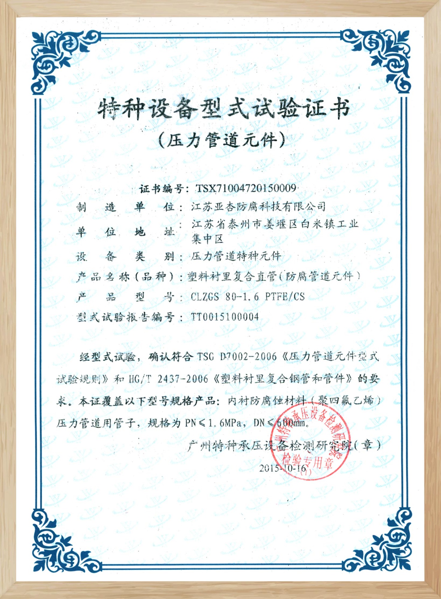: 特種設(shè)備型式試驗證書